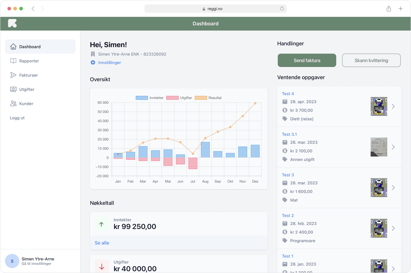 Reggi er laget for kunstnere og andre som ønsker en enkel løsning for å sende fakturaer og føre utgifter. Det er enkelt å bruke, og det er enkelt å få oversikt over regnskapet.